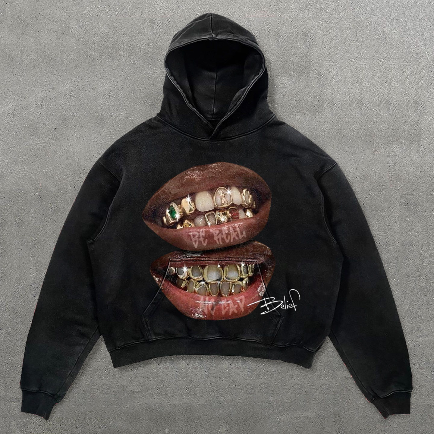 Street Style Teeth Belief Print Long Sleeve Hoodies