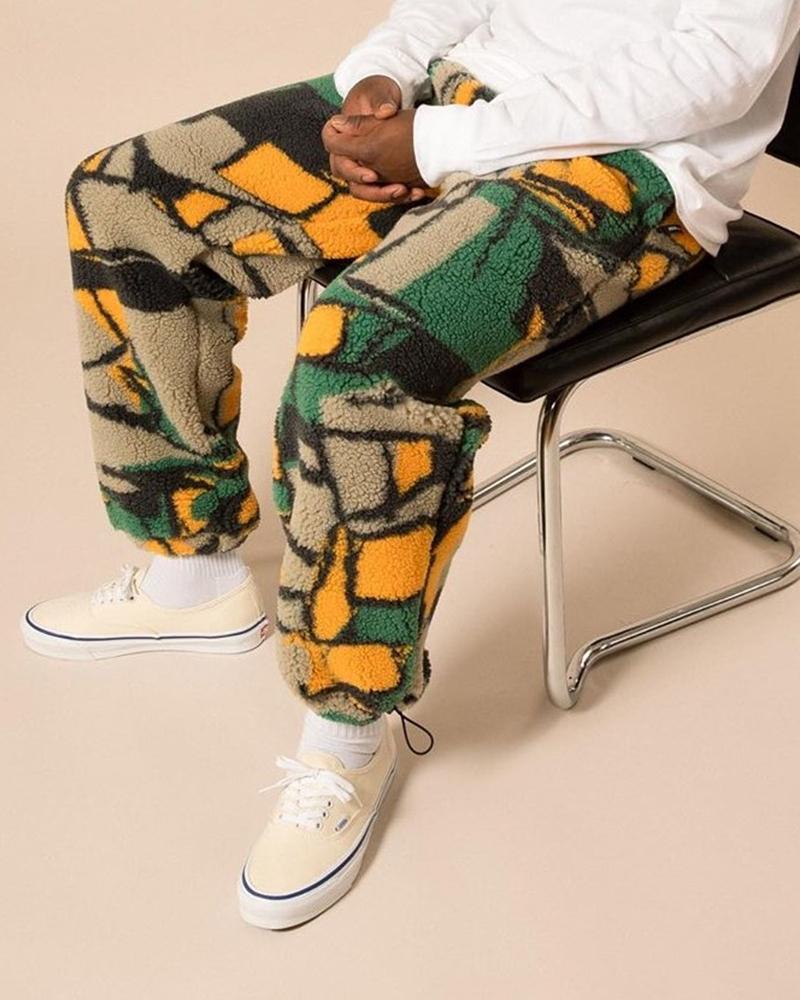 Casual fleece printed trousers