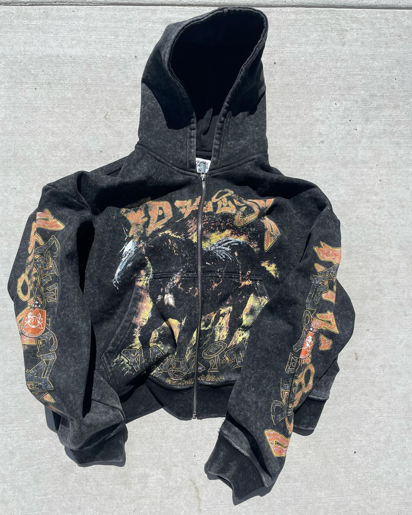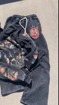 Vintage distressed print sweatshirt suit